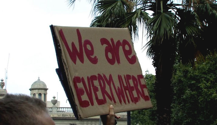 Si la fuerza del anonimato atraviesa, en el sentido de profundizar, el impasse de lo político, lo hace cortocircuitando efectivamente la oposición tradicional reforma/revolución. De aquí que hablar de querer radicalizar el movimiento del 15 M sea un planteamiento equivocado sobre todo por anticuado. No se puede radicalizar lo que ya es absolutamente radical. ¿Se puede ir más allá de un NO que involucra anticapitalismo, crítica de la representación, y una pasión por dar veracidad a lo que se hace? En todo caso, lo que sí se puede es contribuir a colmar déficits políticos (la toma de decisiones, la invención de dispositivos organizativos nuevos…). Pero, sobre todo, lo que es fundamental es ayudar a que la fuerza del anonimato expulse de sí el miedo a su propia fuerza. Tenemos que ser capaces de separar este nosotros plural y diverso que se hace presente en cualquier lugar de lo que es la opinión pública. Esto es especialmente importante por lo que hace referencia a la violencia. Una fuerza política si quiere tener efectividad debe saber posicionarse en relación a la cuestión de la violencia. El movimiento del 15 M con su resistencia pacífica ha sido capaz de desenmascarar la violencia de “lo democrático”. La democracia no es “lo democrático”. “Lo democrático”, que es la democracia verdaderamente existente, consiste en una especie de pasta pegajosa mediante la que nos envuelven para atarnos mejor a la realidad. En “lo democrático” caben desde las normativas cívicas a las leyes de extranjería, pasando por la policía de cercanía que invita a delatar. “Lo democrático” es una mezcla de Estado-guerra que hace de la política una búsqueda permanente de enemigos a eliminar, y de fascismo postmoderno que reduce la libertad a opciones personales y admite la diferencia sólo si es claudicante. “Lo democrático” es el aire que respiramos. Se puede mejorar, limpiar, regenerar – y los términos no son casuales – aunque nunca nos dejarán probar si podemos vivir respirando fuego. “Lo democrático” es, en sí mismo, pura violencia en su doble cara: represiva e integradora; así como también la coartada de la violencia que se autodenomina legítima. Desde esta constatación es evidente que ante la pregunta de si condenamos o no la violencia, debemos callar. Callar ya es una manera de hablar. Porque la mayor violencia la ejerce quién decidiendo qué es la violencia pretende obligarnos a que definamos en relación a ella.