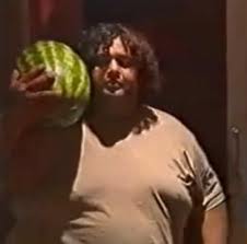 7. Ricardo abre la puerta de la casa y se sorprende, un gordo de enormes dimensiones, -un cuerpo barroco-vestido con una remera manchada, lleva una sandía en su hombro, lo mira y lo dice; Hola loco, traje una sandia…