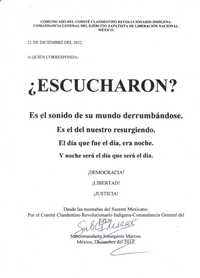 El Pacto por México, suscrito por el Partido Revolucionario Institucional (PRI), el Partido Acción Nacional (PAN) y, a título individual, por el presidente del Partido de la Revolución Democrática (PRD) pretende acordar un programa de reformas al margen de amplios sectores sociales. La movilización del EZLN hace evidente que una muy amplia parte de la sociedad mexicana no está incluida en ese acuerdo, y que lo que acuerden sus suscriptores no necesariamente cuenta con el aval de los ciudadanos.