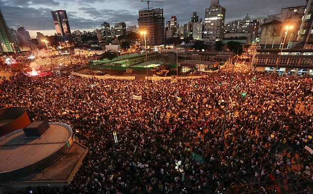 Dilma venía de una mala semana, la habían silbado en la inauguración de la Copa de Confederaciones, ensayo para el mundial. La policía reprimió a manifestantes anti-copa y el ministro de deportes advirtió que no serían admitidas esas protestas. Ahora hubo grandes movilizaciones en ciudades con intendentes o gobernadores petistas, como São Paulo. Aquí, Fernando Haddad –ex profesor de ciencias políticas de la USP con tesis sobre Marx y Habermas, y ex ministro de educación – se mostró inflexible, con argumentos técnicos y justificando por ejemplo la represión policial de la marcha anterior. Mientras escribimos esto, sin embargo, parece venirse la anulación del aumento, o al menos la suspensión con discusión, a partir de la convocatoria de un Consejo de fuerzas Vivas de la Ciudad. Si no retrocede, como ya hicieron otros gobiernos (Porto Alegre) enfrentaría la calle nuevamente. Aunque la novedad tampoco permite prever si será in crescendo o no. Ya hay convocada una marcha para hoy a las 18, esta vez cerca de su sede de gobierno.