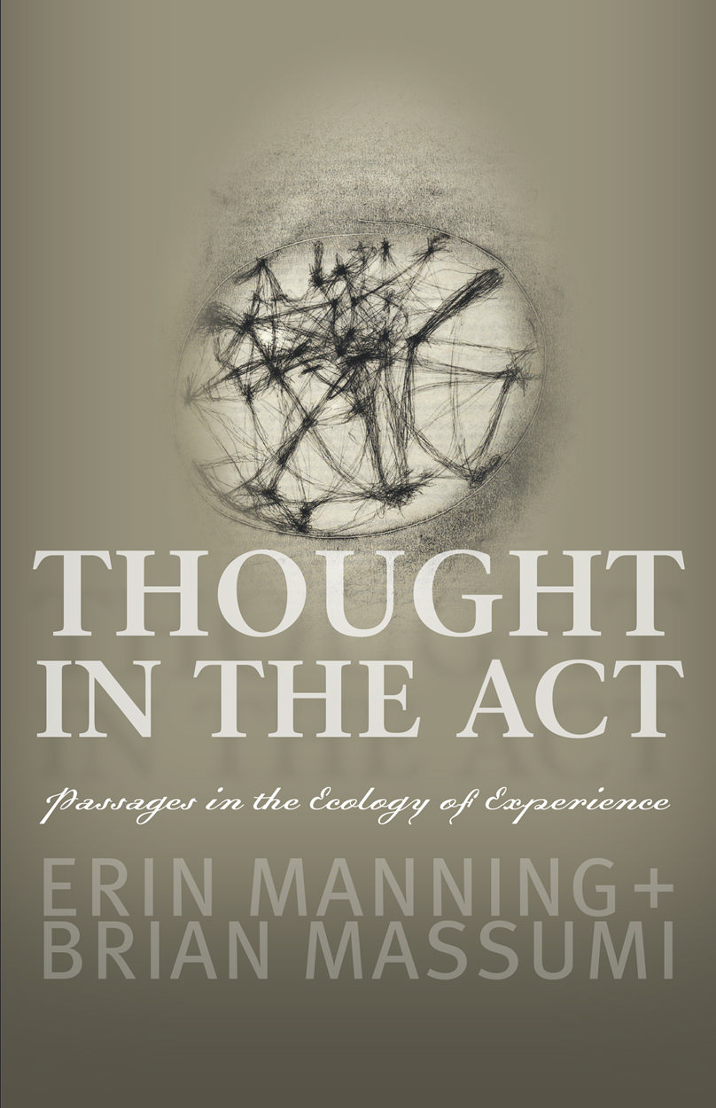 Quizás sea simplemente demasiado pronto para hacer una distinción concreta entre lo alterante y lo alterado, lo que afecta y lo afectado-por. Para la actividad subyacente, es un empujar que tira, que atrae. El cuerpo es empujado hacia un tomar en cuenta que ya está en proceso, y esto lo tira, lo atrae hacia una realización autoindividualizante. No todavía uno u otro, agente o paciente, el cuerpo se encuentra en un “entretejido de modos” que no se puede desenredar (Whitehead 1967b, 70). Pura actividad. Cada lugar es un entramado prehensivo de modos recíprocos en pura actividad. No hay una “localización simple” (Whitehead 1967b, 69– 71). La sonrisa se esparce por todo el rostro mientras el rostro se amolda a la sonrisa. El sofá se acomoda al cuerpo como el cuerpo se extiende sobre el sofá. El amoldamiento ya asigna su doble potencial en el instante mismo en que se percibe el sofá, incluso desde una distancia incómoda. En la actividad subyacente de cada percepción, hay un movimiento de doble vía, de interfusión recíproca que ya, activamente, incipientemente, toma en cuenta. “Nuestro cuerpo penetra el sofá en el que se sienta; y el sofá penetra nuestro cuerpo” (Boccioni 1970, 28). “Lo que emana de los cuerpos y lo que emana de los entornos arquitectónicos se entremezcla” (AG 2002, 61). Una localización modal es un campo de experiencia.