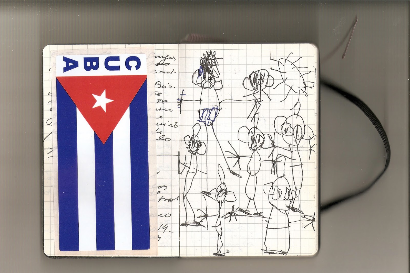 Febrero 2014. Esteban está a punto de cumplir cinco años cuando vuelve a Cuba. Después de una parada breve en la casa de “tía Cary”, en Boyeros, que nos recibe con jugo de fruta bomba, viajamos de noche por la Carretera Central desde La Habana hasta Santa Clara, donde nos espera el resto de la familia. Esteban había estado en la Isla, pero ahora empieza a tomar nota de la Revolución, básicamente por los carteles con tipos vestidos de verde olivo. Aunque también aprende a bailar reggaetón y algo de beisbol –el bate empieza a ser bate, y no palito– los carteles le llaman definitivamente la atención. Camino al agro, recorrido que hacemos casi todos los días, está el Che de los niños, una escultura bastante barroca con escenas de batallas repartidas en relieve por toda la figura del Comandante. Cada vez que pasamos por ahí Esteban se acerca y lo saluda. Y cuando llega a casa generalmente lo dibuja. Pregunta por los hombres que están en el cinturón de la escultura. Son los 38 que murieron con Guevara en Bolivia. Juntos “descansan” en el memorial de Santa Clara, ciudad liberada por el Che. Esteban pide ir al memorial tres veces a saludar a los soldaditos. La primera vez, al salir del mausoleo, se sienta en el piso y los dibuja. ¿El Che cuando era chiquito también tenía papá y mamá? ¿Lloraba cuando se caía jugando al fútbol? Las preguntas vienen en racimos. Le decimos que el bisabuelo Ebo fue soldadito del Che. Que le pregunte a él. Una tarde Ebo vino en bicicleta, le trajo un billete firmado por Guevara cuando fue presidente del Banco Central de Cuba. Antes le había dado su diario de batalla durante la liberación de Angola. Ebo fue radiotelegrafista de las Fuerzas Armadas Revolucionarias, estuvo en la limpia del Escambray, fue movilizado cuando la Crisis de los Misiles, estuvo en la invasión a Girón y fue el primer oficial de comunicaciones del Ejército Central que participó en la liberación de Angola. Para él la Revolución fue una cadena de sonidos que se volvieron las palabras de cada batalla. A sus 82 años, algo nos contó de todo esto: