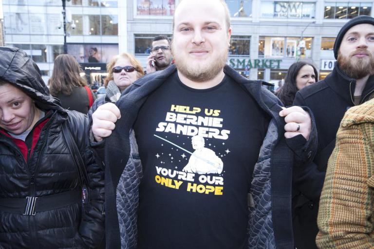 Más a la izquierda, los sospechosos de siempre, han salido de la nada para acusar a Bernie de no ser el portador de la verdadera revolución. Ellos lo acusan de un sinnúmero de desviaciones estilo “pecado original” relacionadas con su falta de alineamiento pleno con alguna estructura particular (y esotérica) de pensamiento político. Algunos dicen que él está actuando como un “perro pastor“ para el Partido Demócrata, atrayendo jóvenes descontentos a su seno -no les importa que él haya sido independiente la mayor parte de su carrera y que ahora se convirtió en el enemigo público Nº 1 del establishment demócrata-. Otros, nunca le perdonarán ser un socialdemócrata cuando él se ha etiquetado tan claramente a sí mismo como un socialista democrático. Y finalmente, están aquellos que piensan que Bernie ha caído en desgracia por su voto en tal o cual política exterior demostrando ser como todos los demás –sin que les importe que critica abiertamente la historia de imposiciones de regímenes en exterior de nuestro país o que sostenga que el cambio climático representa una amenaza a nuestra existencia mayor a la del terrorismo a pesar de la exaltación al miedo por parte de los medios-. Aunque irrelevantes para la conciencia política mainstream, estas patologías son dignas de mención en la medida en que se han agudizado y clarificado distinciones dentro de la vasta izquierda socialista –entre quienes van a donde está la gente y construyen políticas sobre la base de realidad existentes y quienes prefieren sentarse en los márgenes de la historia y reclamarles a quienes no los acompañan.