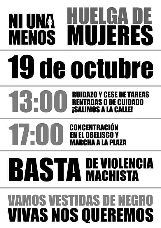 19 DE OCTUBRE: PARO DE MUJERES, TRAVESTIS, TRANS Y LESBIANAS