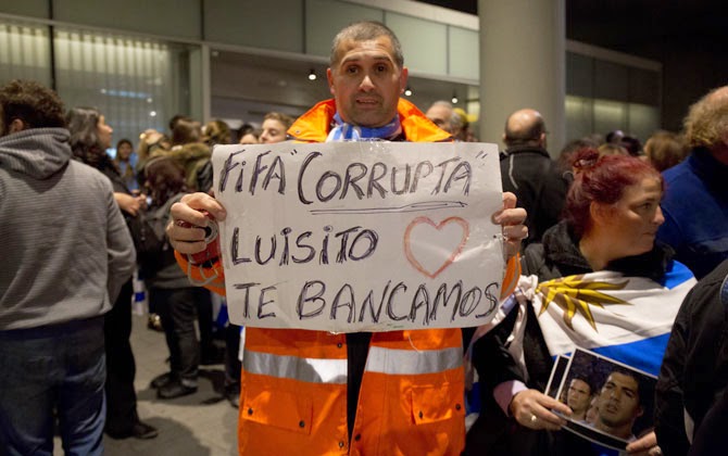 No alcanzo a entender si el que Teodoro Boot en Un prócer sorprendente está más enojado con Suárez o con los que no consideramos tan grave lo que Suárez hizo. En todo caso -más allá de los motivos de «indignación» que genera este escrito- varias de los postulados «equilibrados» que se proponen son bastante desequilibrados. Decir con cierta socarronería que se tiñe de discurso anti-imperialista la crítica a la sanción es, por qué no, desentenderse alegremente de las estrategias totalitarias de la FIFA. Usar la ironía en este caso es bastante fácil, lo difícil es no quedar entrampado en el doble discurso moral que ellos proponen: una mordida en la cancha es más grave que la imposición rigurosa de un calendario de futbol a cada continente, avalar sin tapujos a Mussolini, hacer que Chile juegue un partido sin su rival enfrente (guglealo) para sostener la ideología pinochetista, vivir en una connivencia ejemplar con dictadores latinoamericanos, europeos y africanos como si nada. Se puede seguir, podemos hablar de los comités de «seguridad y control» que armaron con elementos parapoliciales en Sudafrica 2010 pasando por sobre encima de la justicia de ese país, o como -entre otras cosas impuestas para este mundial- se cagaron soberanamente en la legislación vigente en todo Brasil imponiendo la obligatoriedad de venta de cerveza (Budweiser, no otra, porque es sponsor oficial) en los estadios siendo que en Brasil, por LEY NACIONAL, la venta de alcohol está prohibida. No quiero ser ni presumido ni aburrido, pero la lista es muy larga y en todos los casos la criminalidad que existe en cada uno de esos actos de la federación dueña del torneo supera exponencialmente a la reacción casi inconsciente de un jugador con problemas.
