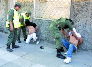 El ejercicio de “saturación policial” llega hasta la Avenida De la Cruz, esquina Portela. Los gendarmes acaban de detener a dos jóvenes que iban en un Peugeot 307, matrícula FOH384, cuyo robo había sido denunciado el 2 de septiembre por la UFI 10 de la localidad bonaerense de San Martín. Los dos detenidos llevaban revólveres calibre 22 y 32. Los gendarmes que participan del Operativo Cinturón del Sur cobran un adicional de 260 pesos por día. “Quieren venir de todo el país” (¡Y el día que pongan recompensas por (¿negro?) cabeza ni te cueto!), cuenta a Tiempo uno de los jefes del patrullaje.