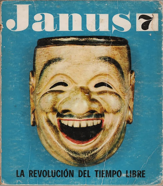 Atesoro con cariño una revista Janus del año 1966 dedicada enteramente a la cuestión del Tiempo Libre. Se trata de una publicación de cultura y filosofía de origen francés, que tuvo su edición traducida al español allá por los años 60, impresa y distribuida en México DF, Buenos Aires, Santiago, Bogotá y tantas otras ciudades ávidas de pensamiento parisino. La encontré en una librería de usados de la calle Corrientes, pagué muy poco por ella, hace ya doce años, y la conservo como una referencia ineludible a la hora de buscar bibliografía que acompañe las ensoñaciones en torno a la cuestión de una improbable Sociedad del Ocio. Sociedad Delicia. La sonrisa contagiosa de una antigua máscara de teatro Noh japonés asomó desde la portada de Janus, debajo de otras tapas de revistas amarillentas. Fue hipnosis a primera vista. Al pie de esa figura se podía leer una consigna/promesa en pequeñas letras de molde, tan enigmática como la máscara y el motivo de esa sonrisa: La Revolución del Tiempo Libre. ¿Será que la inmensa mayoría de seres, no solo humanos, que poblamos este planeta nos merecíamos en 1966 una sociedad delicia? Si pensamos en los discos, films, libros que se editaron o escribieron en aquel año (ver página 213), que anticiparon la catarata psicodélica de obras de arte y revueltas de los tres años siguientes, la respuesta es un rotundo ¿Y porqué no? El asesinato del Che, ocurrido en 1967, no se hacía las mismas preguntas.