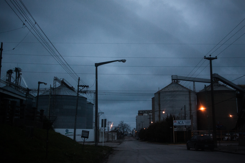 El puerto de Quequén aparece gris, envuelto en la niebla y el silencio. Sus enormes silos apenas se adivinan. Sobre la calle de adoquines hundidos no pasa nadie. A juzgar por los cráteres lunares —de ésa y de las pocas que están asfaltadas—, no es una decisión tan errada. Una bandada de palomas se hace un festín con los granos de cereal que pierden los camiones. Revolotean por todos lados. Compiten por el alimento con las ratas.
