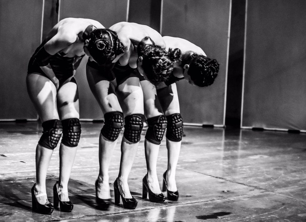 Entran a escena como robots, la mano acompasada en el pubis y una forma de caminar idéntica hacen de estxs ciberborg una expresión descolocada de la peste. Es que si