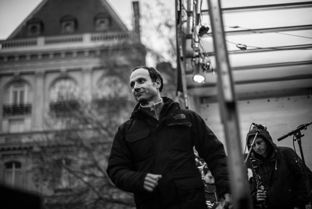 Nos rondaba por la cabeza una reproducción original de los movimientos de plaza europeos. Un movimiento que tendría que permitir romper con el cartel de las tiendecillas partidistas de la izquierda, atrapadas en las instituciones de la Va República, incapaces de levantar cabeza para inventar alguna otra cosa y destinadas a perderse por el camino con sus eternas maniobras para terminar a menudo como comparsas en el desfile socialista. Era necesario pues un movimiento de plaza para que la gente pudiese juntarse físicamente, pero dejando en casa las etiquetas partidistas. Era necesario trabajar con otra lógica, para hacer algo diferente. Elegir la plaza fue finalmente bastante fácil : la República. Desde enero, ya teníamos en mente una actividad, en torno a la proyección pública, salvaje, de «Merci Patron!». ¡Pero las inspiraciones de tres o cuatro no bastan ! Para que se materialicen es necesario ser un buen grupo. Después del estreno de «Merci Patron!», unas cuantas docenas de personas acabaron reuniéndose, espontáneamente y trabajaron para que se hiciese realidad nuestra consigna el 31 de marzo (jornada de movilización contra la reforma laboral): «Después de la manifestación; no volvemos a casa». Son las mismas personas que, por ejemplo, inventaron el nombre de ‘Nuit Debout’, un magnifico pensamiento.