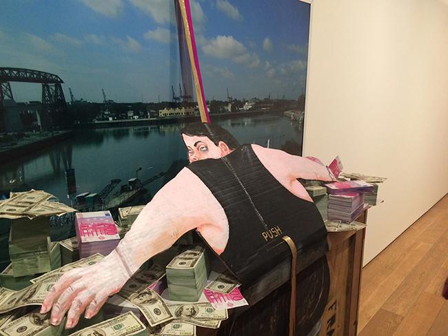 ¿Qué sentidos se desprenden de una instalación de esas características en un antro cuyo dueño es uno de los mayores empresarios inmobiliarios del país? Bueno, ellos, el dúo Mondongo, dicen que es un señalamiento del problema de vivienda, una obra de sitio específico, que ya trabajaron muchas veces ese tema y otras cosas por el estilo. Pero en las fotos de la inauguración, tipo “red carpet”, con galeristas, funcionarios y personajes de ese mundillo posando delante de una escenografía de una villa, no parece que la obra esté alertando a nadie de ningún problema social. Es que el sentido de las cosas se revela en su funcionamiento. Y la apuesta terminó siendo algo más parecido a un parque temático de la pobreza que a una reflexión sobre el asunto, que aportara algo interesante a la conversación. Resultó una operación inversa a la de Marcia en el Fortabat. En este caso, el signo MALBA se tragó a Mondongo, a Berni y a cualquier cosa que metieron ahí. Todo quedó al servicio de ese signo centrípeto. “Como un perro tolerado por la gerencia por ser inofensivo”, dice Pessoa.